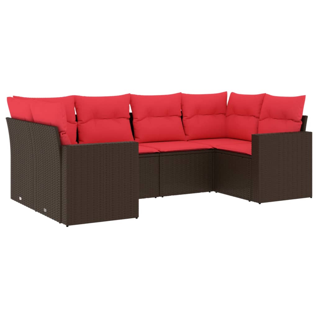 vidaXL 6-delige Loungeset met kussens poly rattan grijs