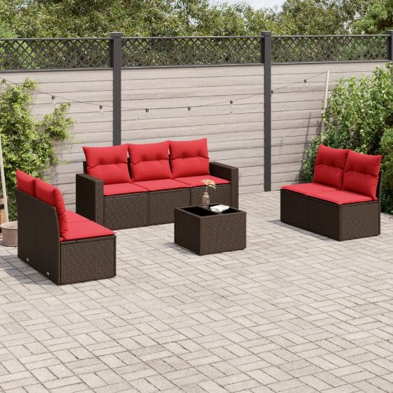 vidaXL 7-delige Loungeset met kussens poly rattan bruin
