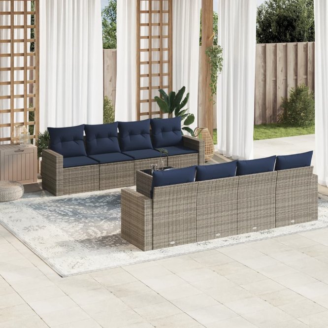 vidaXL 9-delige Loungeset met kussens poly rattan grijs