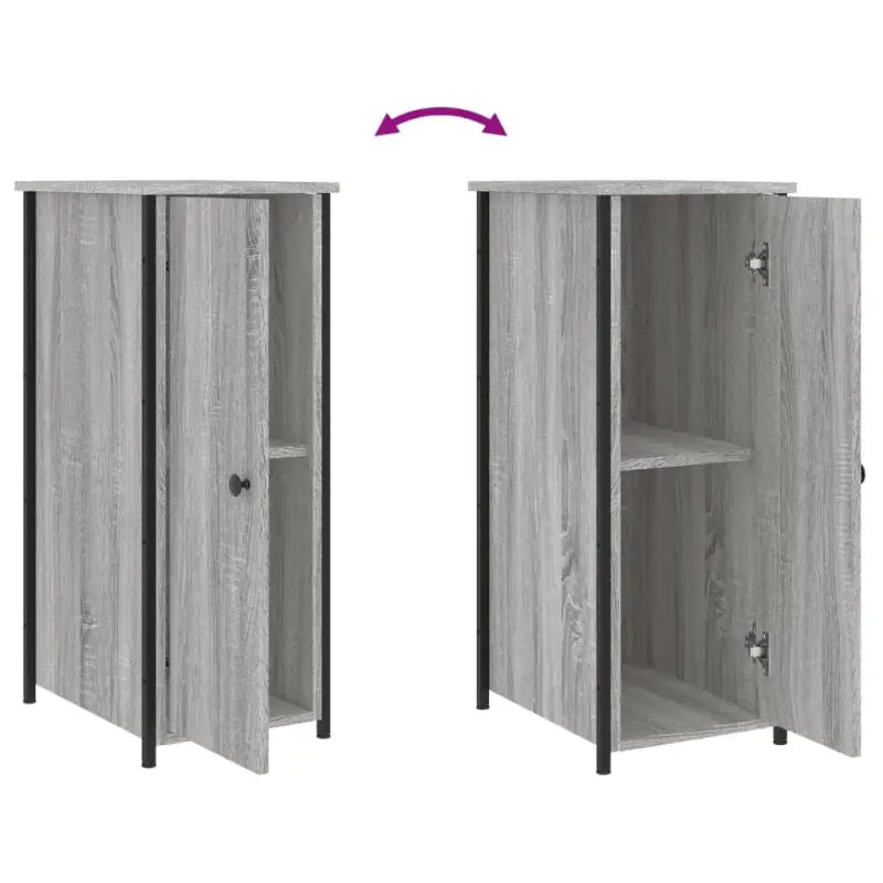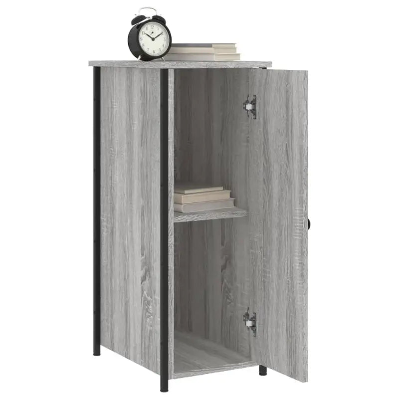 Industrieel nachtkastje van bewerkt hout met verstelbare poten in grijs sonoma