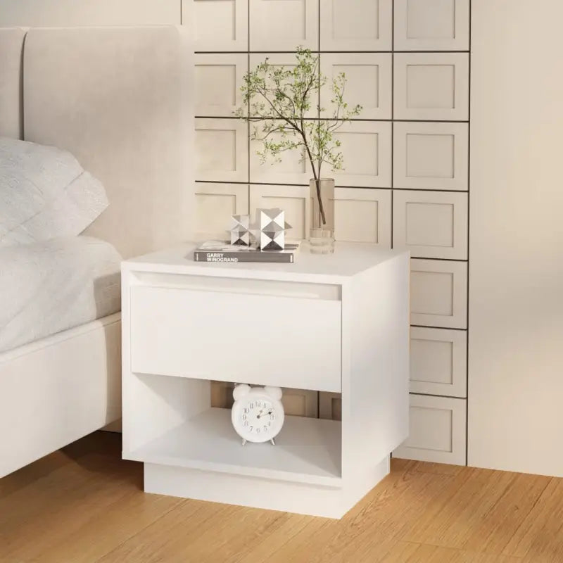 Dit nachtkastje heeft een stevige en duurzame constructie, waardoor hij langdurige dienstbaarheid biedt. De lade en het open vak bieden voldoende ruimte om je kleine spullen overzichtelijk en binnen handbereik te houden. Het stevige blad is ideaal om een lamp, klok, enz. op te plaatsen.