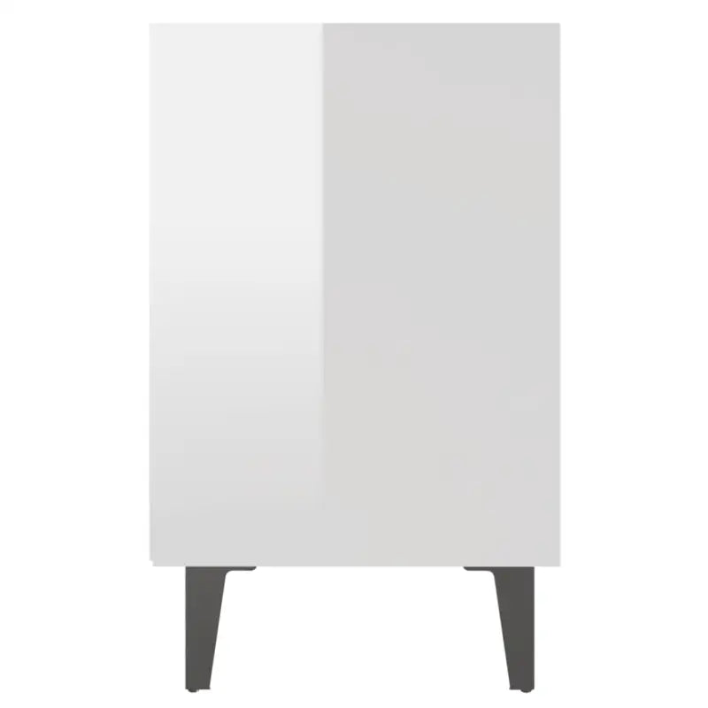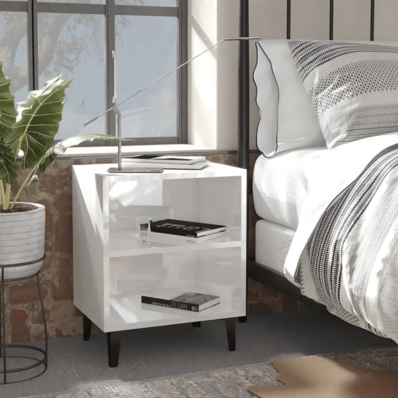 Metalen poten nachtkastje in hoogglans wit met opbergruimte