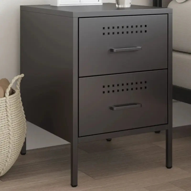 Eenvoudig schoon nachtkastje met industriële uitstraling van stevig staal