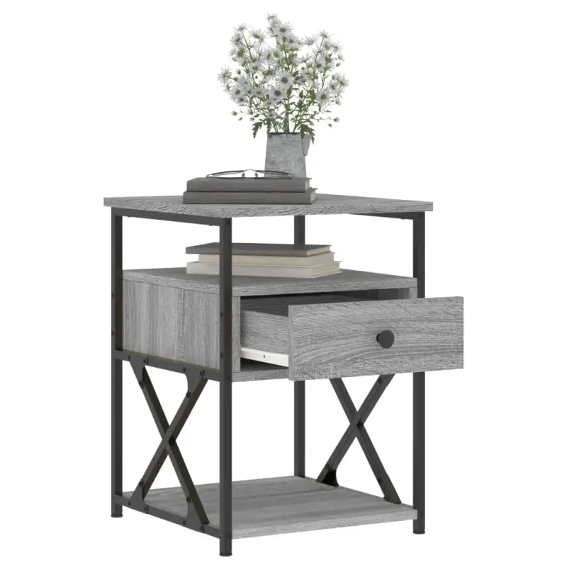 Grijs Sonoma nachtkastje met bewerkt hout en verstelbare poten