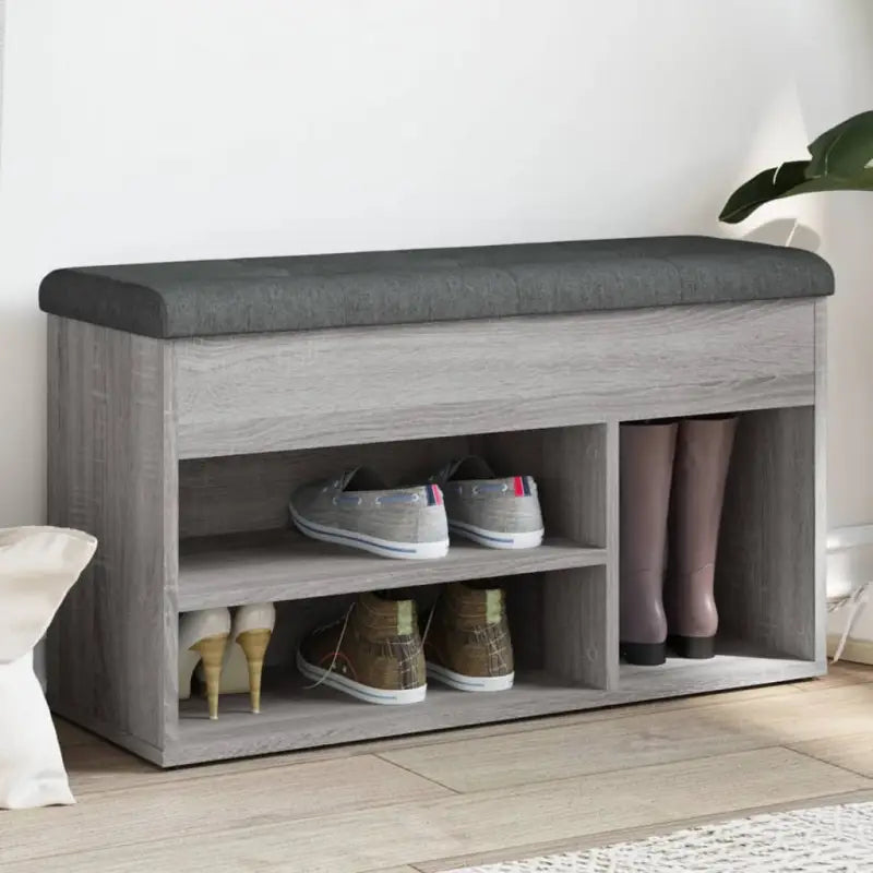 Schoenenbank van bewerkt hout in grijs sonoma voor schoenen overzichtelijk