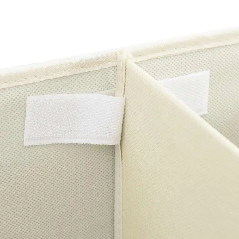 De doos is gemaakt van verschillende, behoorlijk duurzame stoffen. De opbergbox heeft 2 vakken en biedt voldoende ruimte voor het opbergen van speelgoed, sjaals, sokken, boeken, enz. Als hij niet in gebruik is, kan de box worden ingeklapt om ruimte te besparen. Daarnaast heeft hij een handgreep, waarmee je hem gemakkelijk uit de kast kunt halen.