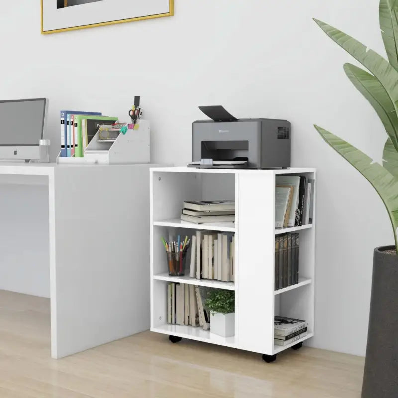 De kast is gemaakt van bewerkt hout waardoor hij duurzaam en gemakkelijk schoon te maken is. Het rechthoekige blad kan worden gebruikt om een printer, papier en accessoires op te plaatsen. Dit meubel kan onder een bureau geplaatst worden. Dankzij de wieltjes, waarvan er 2 vergrendelbaar zijn, is de rolkast bijzonder mobiel en multifunctioneel.