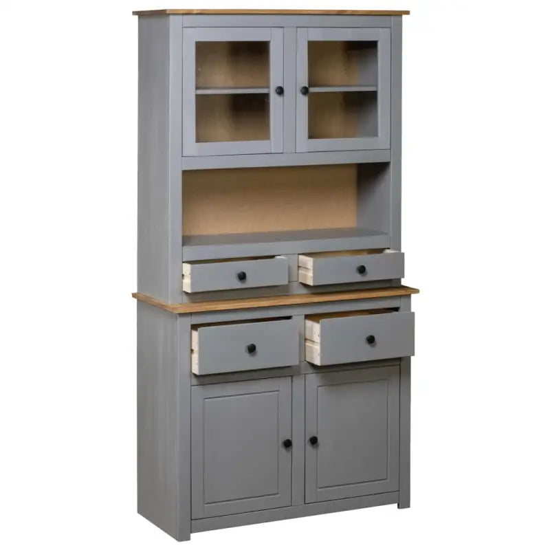Deze massief grenenhouten hoge kast heeft een rustiek en trendy ontwerp en is zowel een decoratieve als een praktische aanvulling op je interieur.