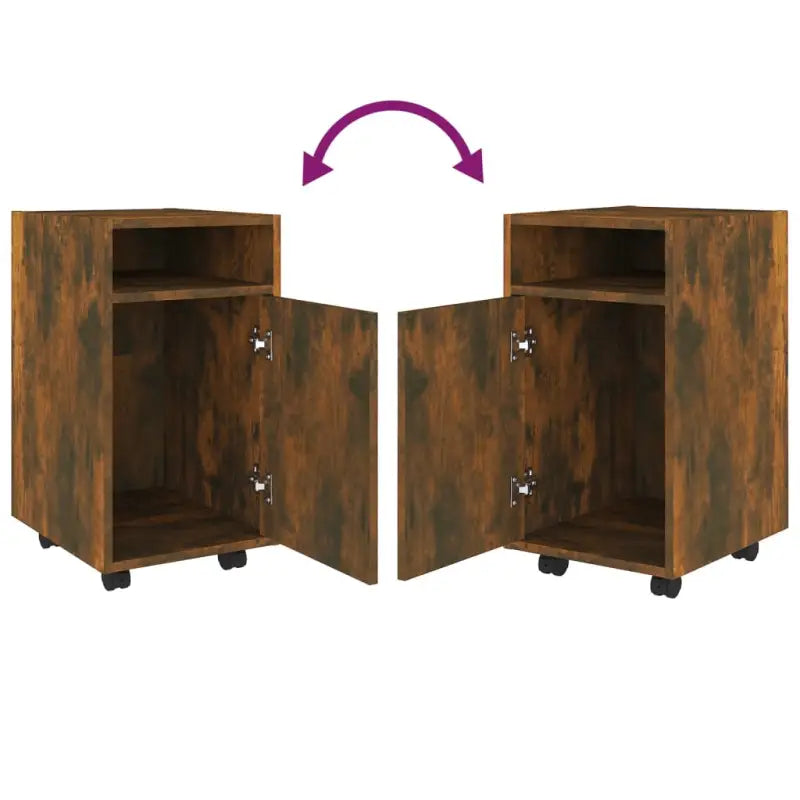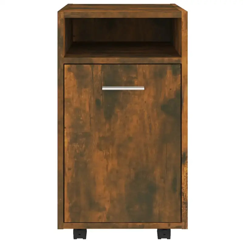 Opbergkast van gerookt eiken bewerkt hout met wieltjes