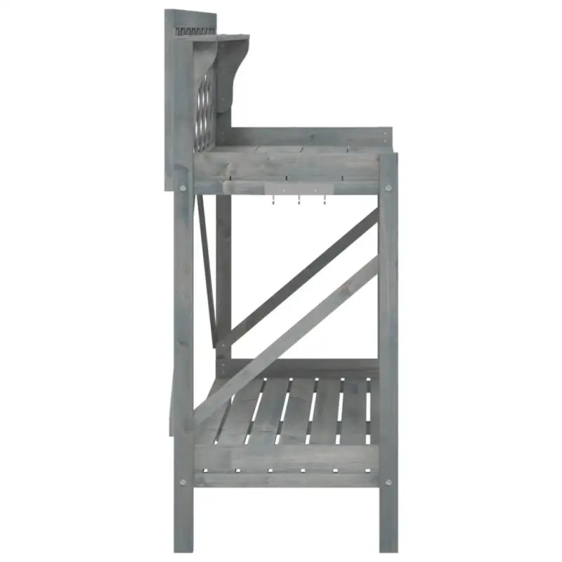 - Veelzijdige opbergruimte: de oppotbank met open schappen, een bovenrichel, metalen haken aan de zijkant en een lade, biedt voldoende ruimte voor aanverwante goederen zoals klein tuingereedschap, aarde, kunstmest, enz.