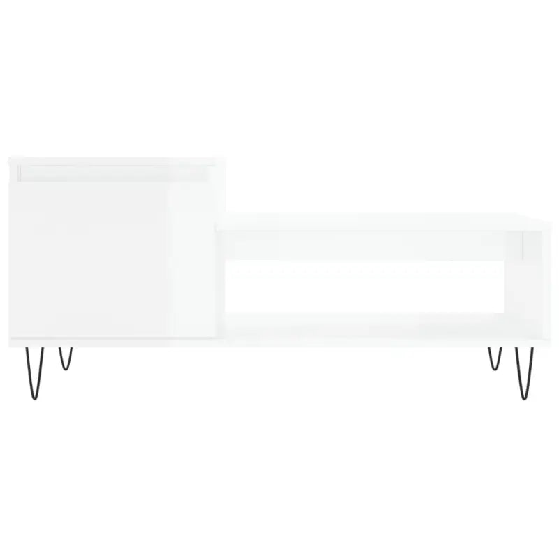 Salontafel met bewerkt hout metalen poten en hoogglans wit afwerking
