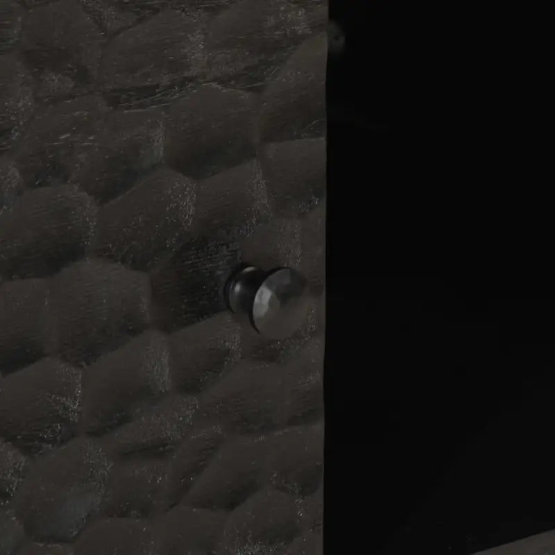 - Materiaal: massief mangohout met zwarte beits, ijzer en bewerkt hout