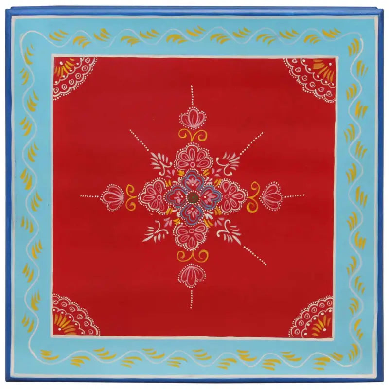Salontafel van massief mangohout met handgeschilderde decoraties