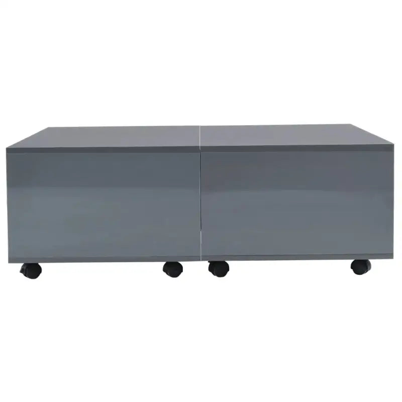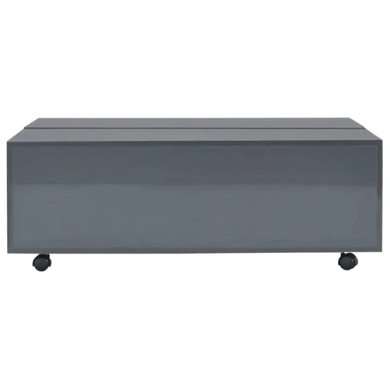 Stijlvolle salontafel van bewerkt hout met hoogglans afwerking en vergrendelbare wielen
