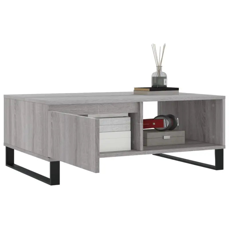 Salontafel met bewerkt hout en ijzeren poten in grijs Sonoma