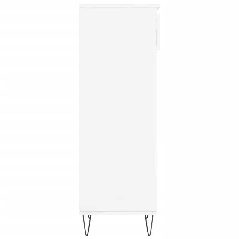 Elegante schoenenkast met bewerkt hout en metalen poten in hoogglans wit