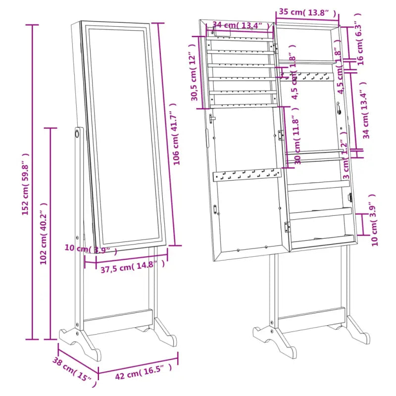 - Vrijstaand ontwerp: deze vrijstaande sieradenopberger kan eenvoudig overal in je slaapkamer, woonkamer of waar je maar wilt worden geplaatst. En de basis met 2 poten houdt deze sieradenspiegel in balans en stabiel, zelfs wanneer hij van binnen volgeladen is.
