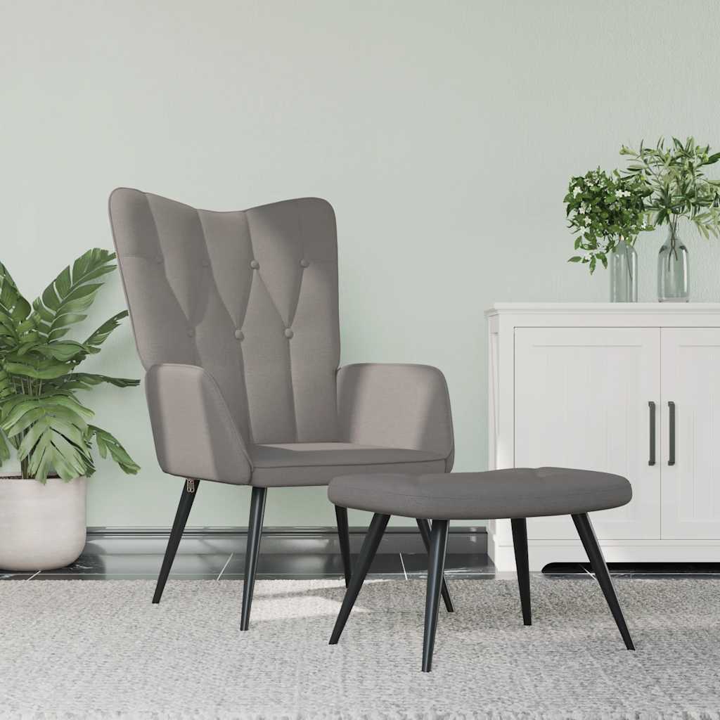 vidaXL Fauteuil verstelbaar met voetenbank stof donkergrijs