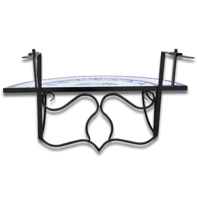 Het ijzeren frame draagt bij aan de stevigheid en het halfronde, keramische tafelblad is gemakkelijk schoon te maken. Deze balkontafel kan op elk terras- of balkonrailing tot 18 cm breed worden bevestigd. Hij kan gemakkelijk worden ingeklapt wanneer hij niet wordt gebruikt, waardoor er ruimte wordt bespaard! Let op, dit product is niet geschikt om in koud weer buiten te staan.