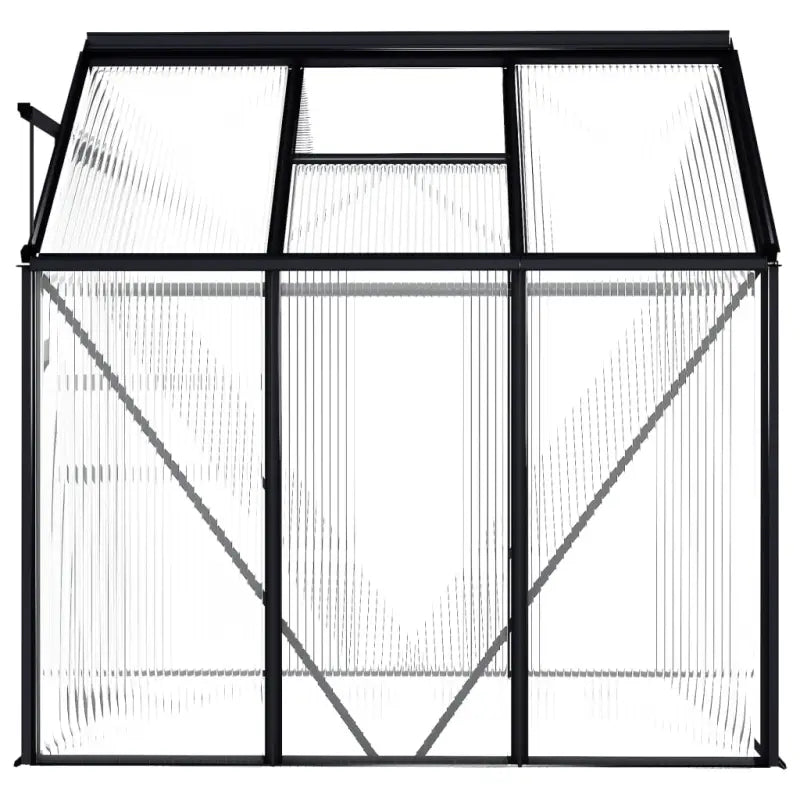 Deze massieve tuinkas is gemaakt van polycarbonaat panelen waardoor hij uv-bestendig en thermisch isolerend is. De kweekkas heeft een stevige en onderhoudsvrije constructie van aluminium voor extra stabiliteit. Het gotensysteem zorgt voor effectieve waterafvoer en het ventilatiegat in het dak zorgt voor optimale ventilatie op hete dagen. De dakpanelen worden bevestigd met metalen klemmen, wat zorgt voor stevigheid en duurzaamheid. Onze kas is eenvoudig te monteren.