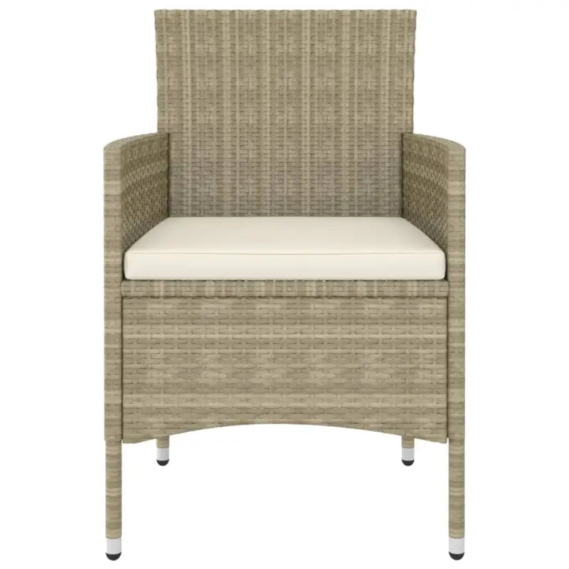 De loungeset heeft een gepoedercoat stalen frame dat met poly rattan omwikkeld is, waardoor hij zeer duurzaam is. Het tafelblad is gemaakt van gehard glas, waardoor het eenvoudig schoon te maken is. Het dik gevoerde zitkussen maakt de stoel extra comfortabel.