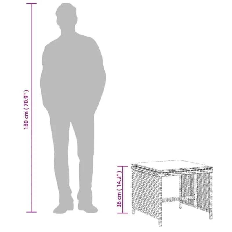 • Duurzaam materiaal: PE-rattan, ook wel poly rattan genoemd, is een sterke, onderhoudsarme kunststof die lijkt op natuurlijk rattan. Het is licht van gewicht en gemakkelijk schoon te maken en wordt vaak gebruikt voor tuinmeubelen vanwege de duurzaamheid en weerbestendige eigenschappen.