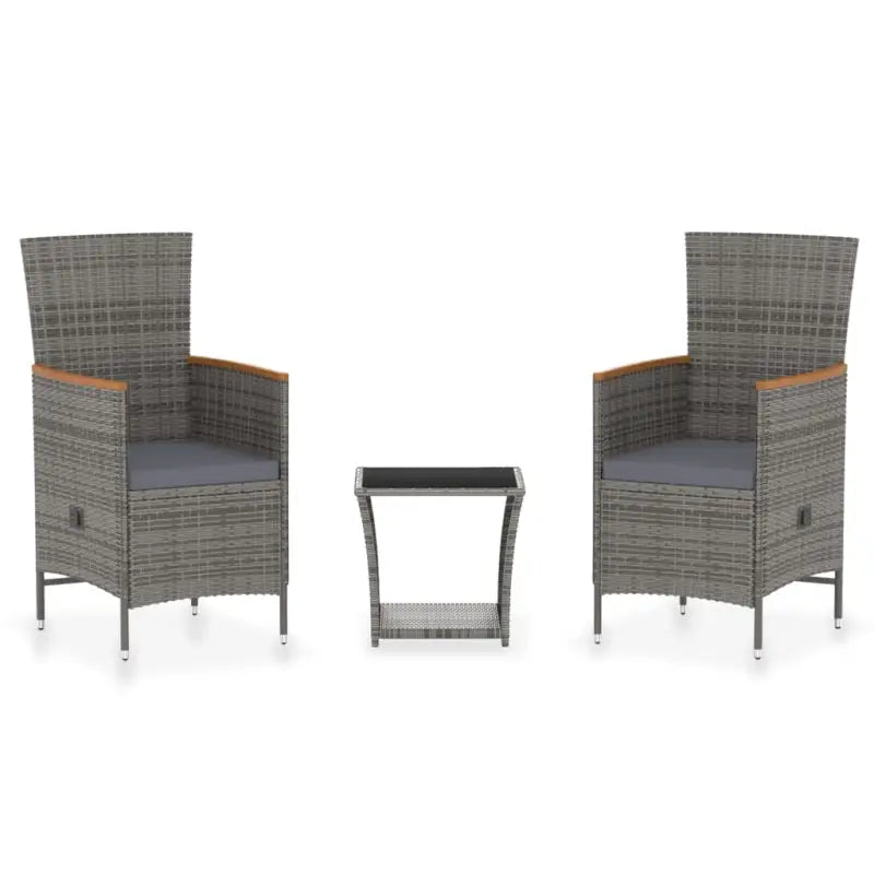 Deze armstoelen en tafel zijn gemaakt van waterbestendig PE-rattan waardoor de set gemakkelijk schoon te maken, slijtvast en geschikt voor dagelijks gebruik is. De gepoedercoat stalen frames maken de meubelset sterk en stevig. Ook heeft de tafel een glazen blad dat gemakkelijk schoon te maken is en het onderschap biedt extra opbergruimte. De verstelbare stoelen bieden je het nodige comfort. Met de knop aan de zijkant kan je de rugleuning verstellen. Dankzij hun lichtgewicht constructie is de set eenvoudig te verplaatsen. Hij wordt geleverd met zeer comfortabele, dik gevoerde zitkussens voor ultiem comfort. De onderhoudsarme polyester hoezen kunnen verwijderd en gewassen worden.