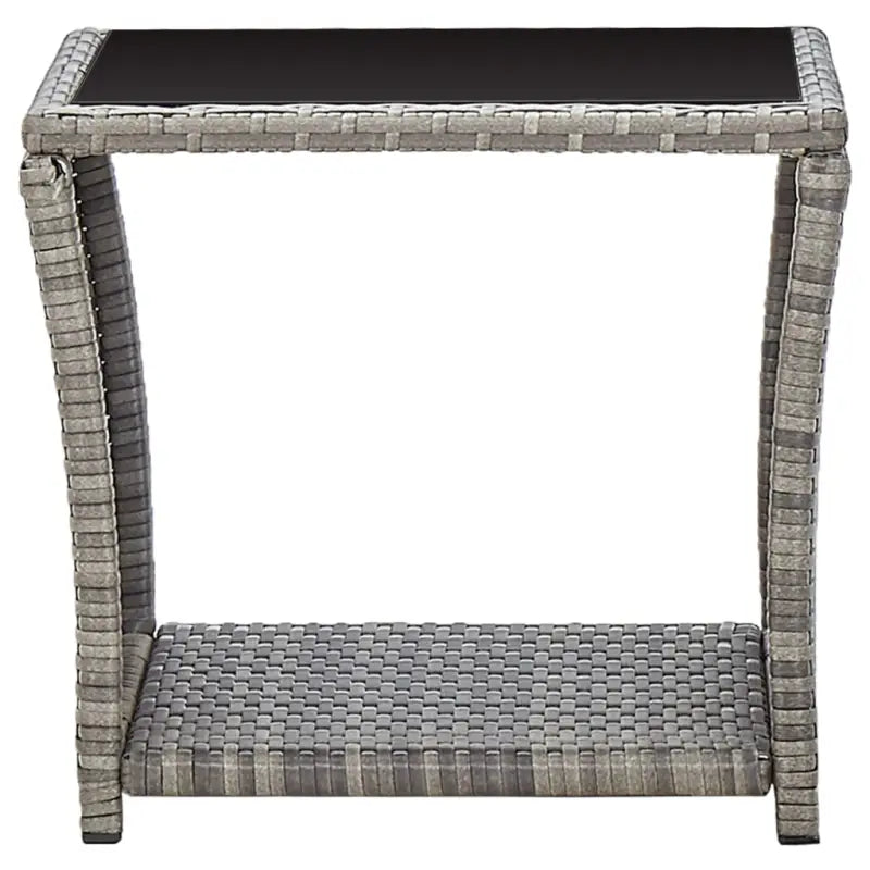 • Materiaal: PE-rattan, massief acaciahout, gepoedercoat staal en etsglas
