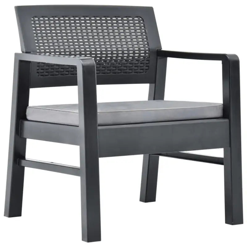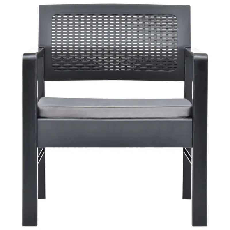 De loungeset is gemaakt van kunststof waardoor hij makkelijk schoon te maken en stabiel is. Het stevige tafelblad is ideaal om eten en drinken binnen handbereik te houden. De kussens dragen bij aan het zitcomfort van de stoel.