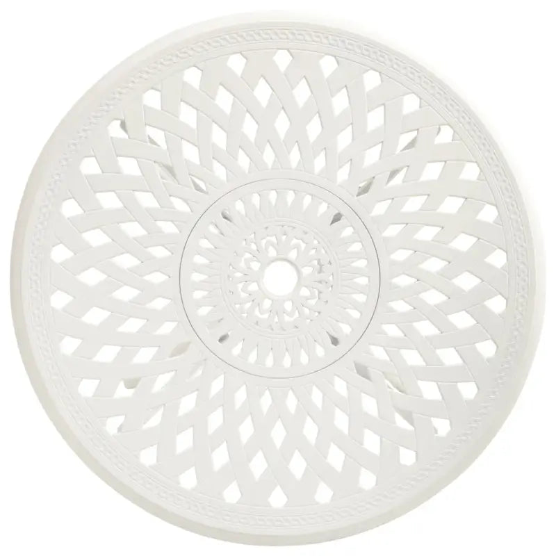 Deze theetafel is gemaakt van gietaluminium en is dus stabiel, stevig en ideaal voor dagelijks buitengebruik. Het tafelblad heeft een uniek hol design en is geschikt voor het plaatsen van drankjes, snacks en andere spullen. De vier afzonderlijke poten zijn zeer stabiel. Bovendien heeft deze terrastafel een parasolgat zodat je buiten kunt genieten terwijl je beschermd bent tegen zon en regen.