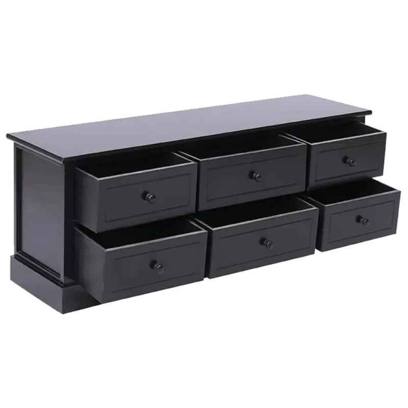 De televisiekast is gemaakt van hoogwaardig paulownia- en populierenhout en is zeer duurzaam en gemakkelijk schoon te maken. Het stevige blad is ideaal om je tv- en stereoapparatuur of wat decoratieve voorwerpen, zoals vazen of potplanten, op te zetten. Daarnaast heeft het meubel 6 soepel lopende lades, die voldoende opbergruimte bieden voor je persoonlijke spullen. Deze kast houdt je woonkamer, slaapkamer of andere woonruimtes netjes en opgeruimd.