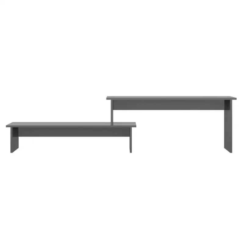 De tv-standaard is ontworpen met 1 onderschap en 1 bovenschap, en de totale lengte is verstelbaar. Je kan het bovenste schap naar wens plaatsen. Het meubel is gemakkelijk schoon te maken met een vochtige doek.