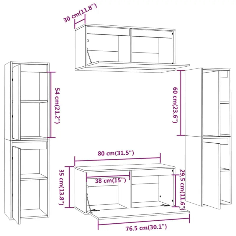 • 2 x televisiemeubel: 80 x 30 x 35 cm (B x D x H)