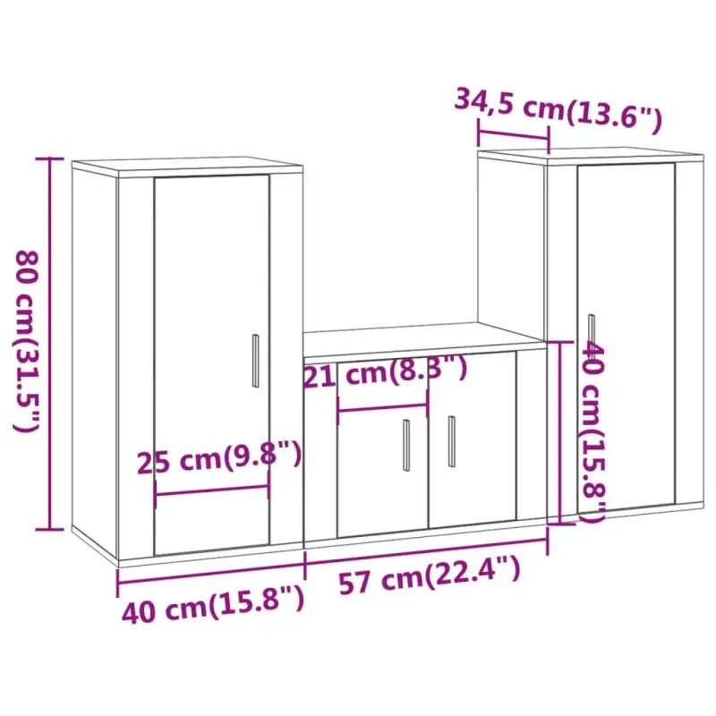 - 1 x tv-meubel: 57 x 34,5 x 40 cm (L x B x H)