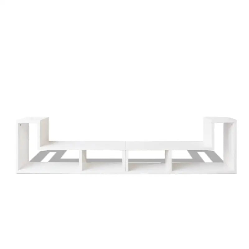 Zijn robuuste constructie maakt dit tv-meubel zeer duurzaam. De televisie kast bestaat uit 2 L-vormige elementen, die in verschillende opstellingen kunnen worden geplaatst. De grote planken met voldoende ruimte zorgen ervoor dat u uw dvd-speler, spelcomputer, streaming apparaat, media dragers, decoratieve objecten, enz. netjes georganiseerd kunt houden.