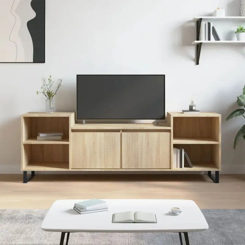 - Stevig blad: het blad van het tv-meubel biedt een stevig oppervlak om decoratieve items zoals fotolijstjes of potplanten op te zetten.
