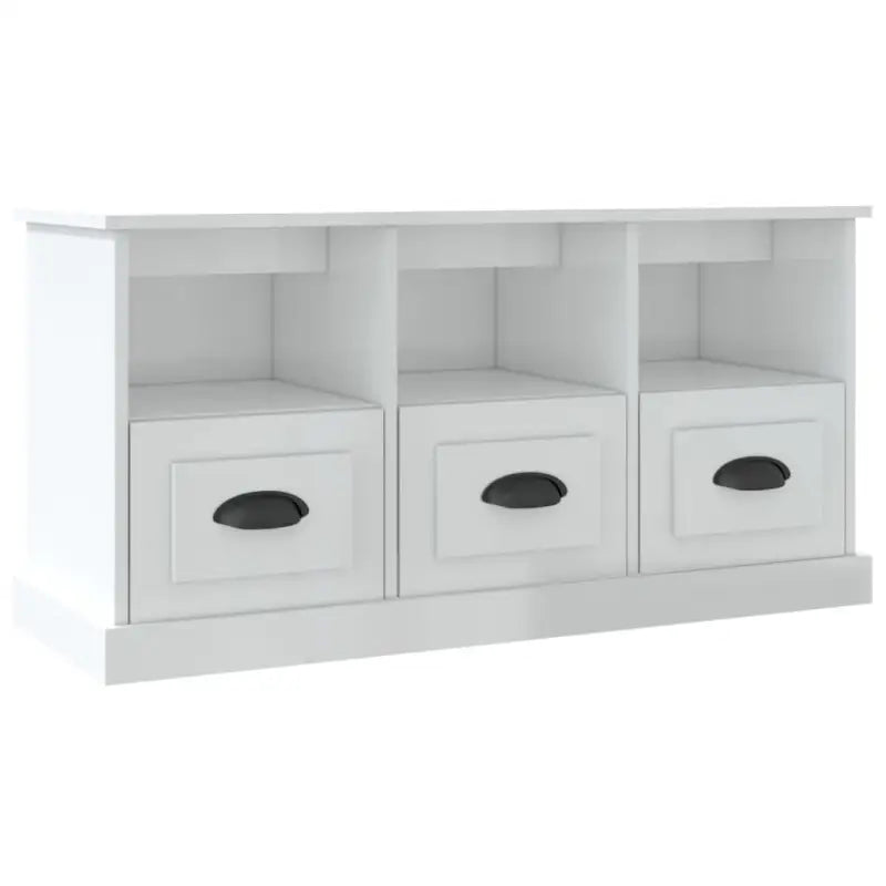 Tv-meubel in hoogglans wit van bewerkt hout voor een moderne uitstraling
