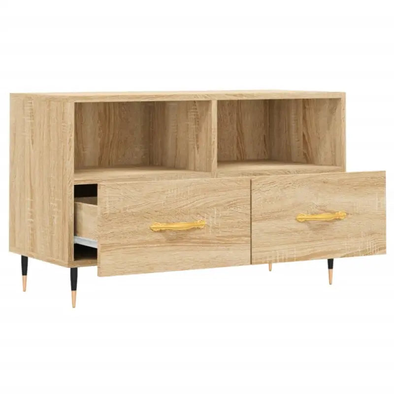 Tv-meubel van bewerkt hout met ijzeren poten in Sonoma Eiken design