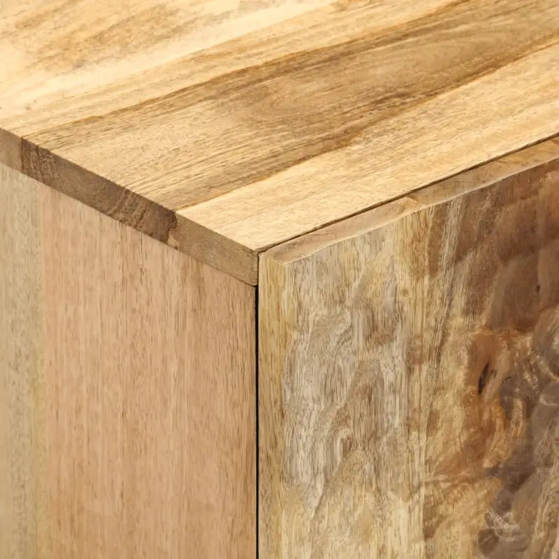 - Massief mangohout: massief mangohout is een sterk, tropisch hardhout waar stevige meubelen van gemaakt worden. De prachtige houtnerven maken elk meubelstuk net even anders dan de rest. Het tv-meubel is gemaakt van massief mangohout en is duurzaam en stabiel.