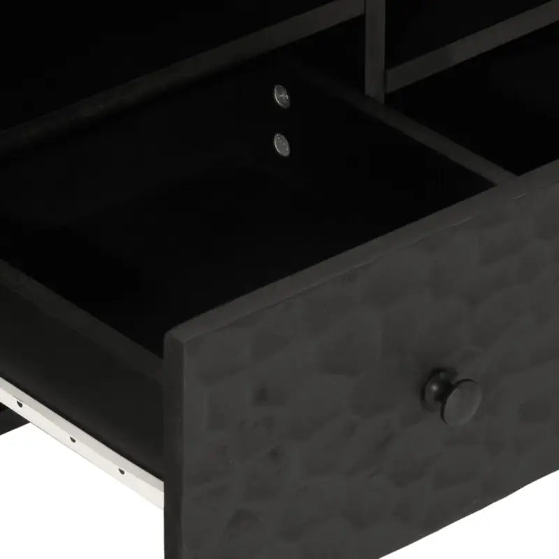 - Materiaal: massief mangohout met zwarte beits, ijzer en bewerkt hout