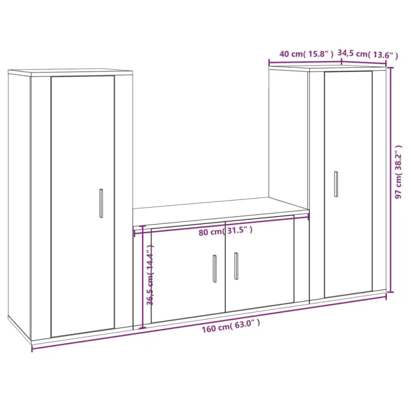 - 1 x tv-meubel: 80 x 34,5 x 40 cm (B x D x H)