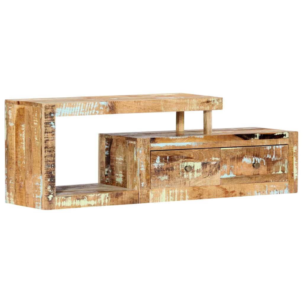 De hifi-kast is gemaakt van massief gerecycled hout dat afkomstig is van balken, vloeren en steunbalken van oude gebouwen. Dit hout bestaat uit verschillende houtsoorten, zoals grenen, teak, beuken, eiken, ceder, mangohout en acacia. Dit betekent dat het teruggewonnen hout de kenmerken van deze verschillende houtsoorten heeft. Gerecycled hout is al verouderd, verweerd en gedroogd en krimpt en buigt daarom niet. Het uitmuntende vakmanschap en de delicate houtnerven maken elk meubelstuk onderscheidend en enigszins anders van elkaar. Het meubel heeft 2 lades en 1 vak en biedt dus voldoende ruimte voor het opbergen van je multimedia-apparaten, boeken en andere spullen. Het hifi-meubel is al gemonteerd; er is geen montage vereist.