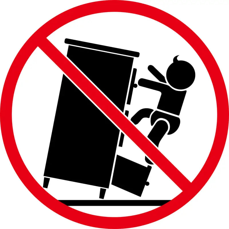 - To prevent tipping, this product must be mounted to the wall using the supplied mounting materials.