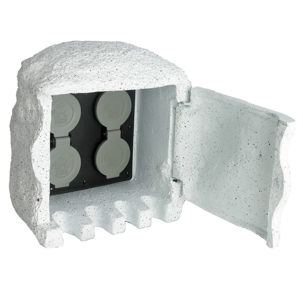 vidaXL Garden socket with ground spike, light sensor, 4-way, stone look, grey