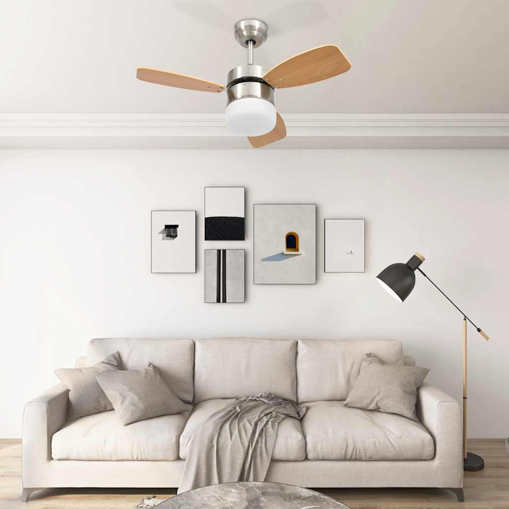 vidaXL Plafondventilator met lamp afstandsbediening 76 cm lichtbruin