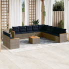 vidaXL 11-Piece Lounge Set with Cushions Poly Rattan Grey