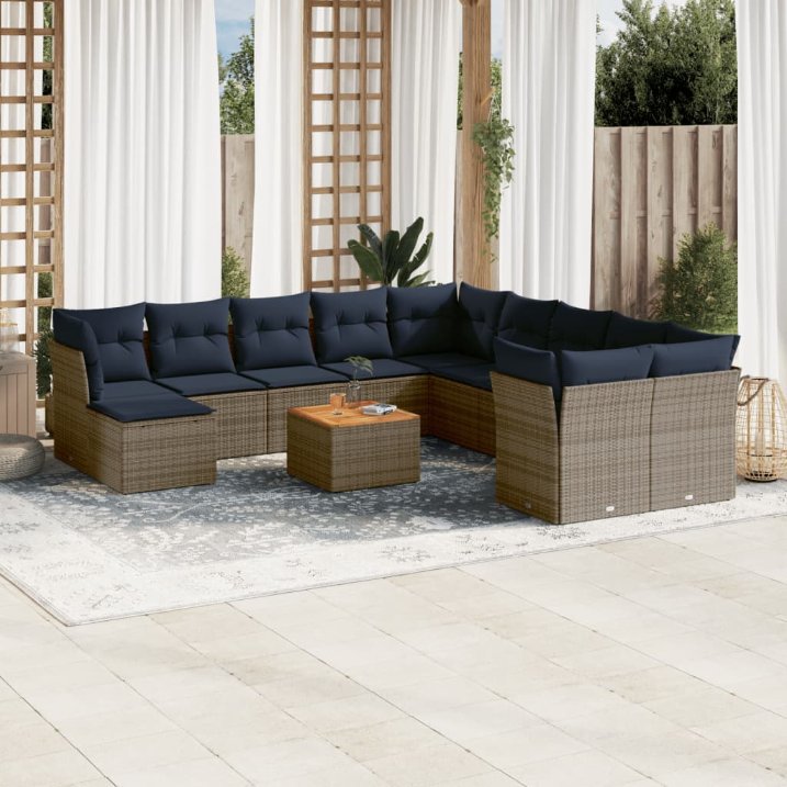 vidaXL 12-Piece Lounge Set with Cushions Poly Rattan Grey
