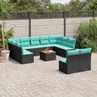 vidaXL 12-Piece Lounge Set with Cushions Poly Rattan Black