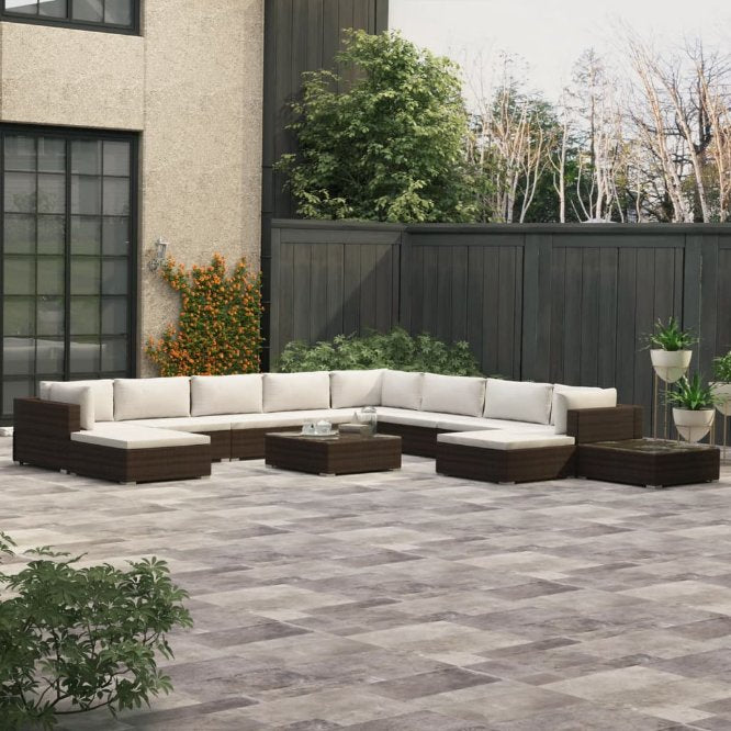 vidaXL 12-delige Loungeset met kussens poly rattan zwart