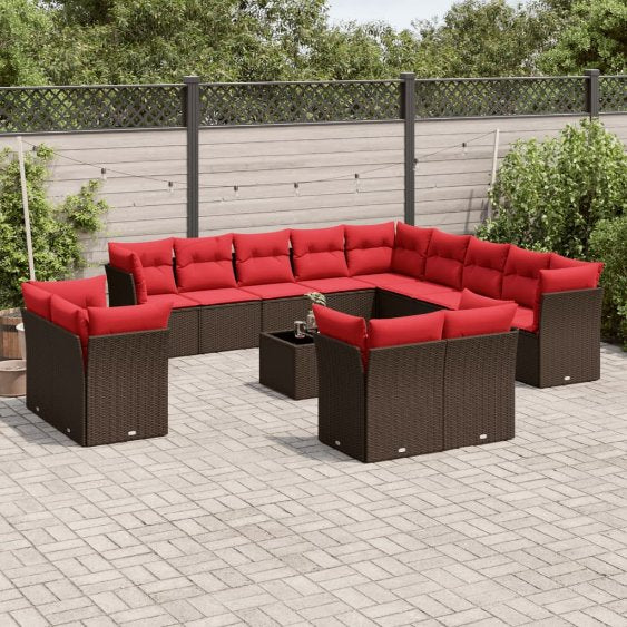 vidaXL 13-delige Loungeset met kussens poly rattan bruin